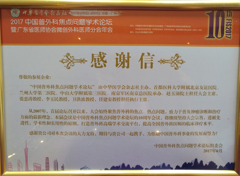 本次會(huì)議,我司參會(huì)人員積極配合主委會(huì)開展各項(xiàng)會(huì)務(wù)工作。因此,大會(huì)主辦方為我公司頒發(fā)了感謝信,這是對(duì)我們努力付出極大地認(rèn)可與肯定,我們將繼續(xù)努力,讓更多的人認(rèn)識(shí)了解我們的品牌,一起開創(chuàng)我國醫(yī)療事業(yè)更加美好的未來!